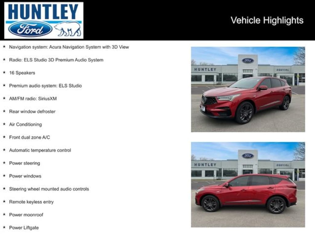 2020 Acura RDX AWD, 16 Speakers, Air Conditioning, Alloy wheels, AM/FM radio: SiriusXM, Automatic temperature control, Front dual zone A/C, Navigation system: Acura Navigation System with 3D View, Power Liftgate, Power moonroof, Power steering, Power windows, Premium audio system: ELS Studio, Radio: ELS Studio 3D Premium Audio System, Rear window defroster, Remote keyless entry, Steering wheel mounted audio controls, Wheels: 20" x 8" Shark Gray Split 5-Spoke.