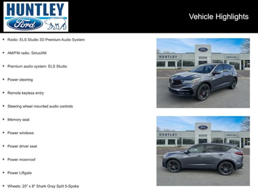 2020 Acura RDX AWD, AM/FM radio: SiriusXM, Memory seat, Power driver seat, Power Liftgate, Power moonroof, Power steering, Power windows, Premium audio system: ELS Studio, Radio: ELS Studio 3D Premium Audio System, Remote keyless entry, Steering wheel mounted audio controls, Wheels: 20" x 8" Shark Gray Split 5-Spoke. Clean CARFAX.