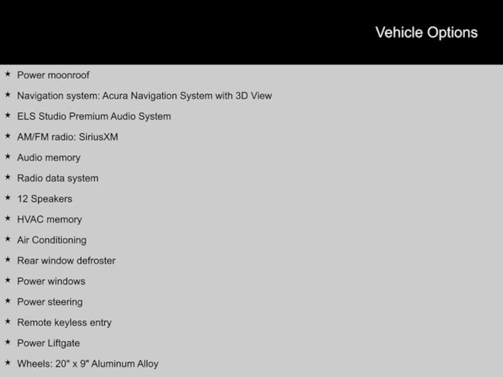 - Audio System Premium Brand Speakers: Acura/ELS Surround