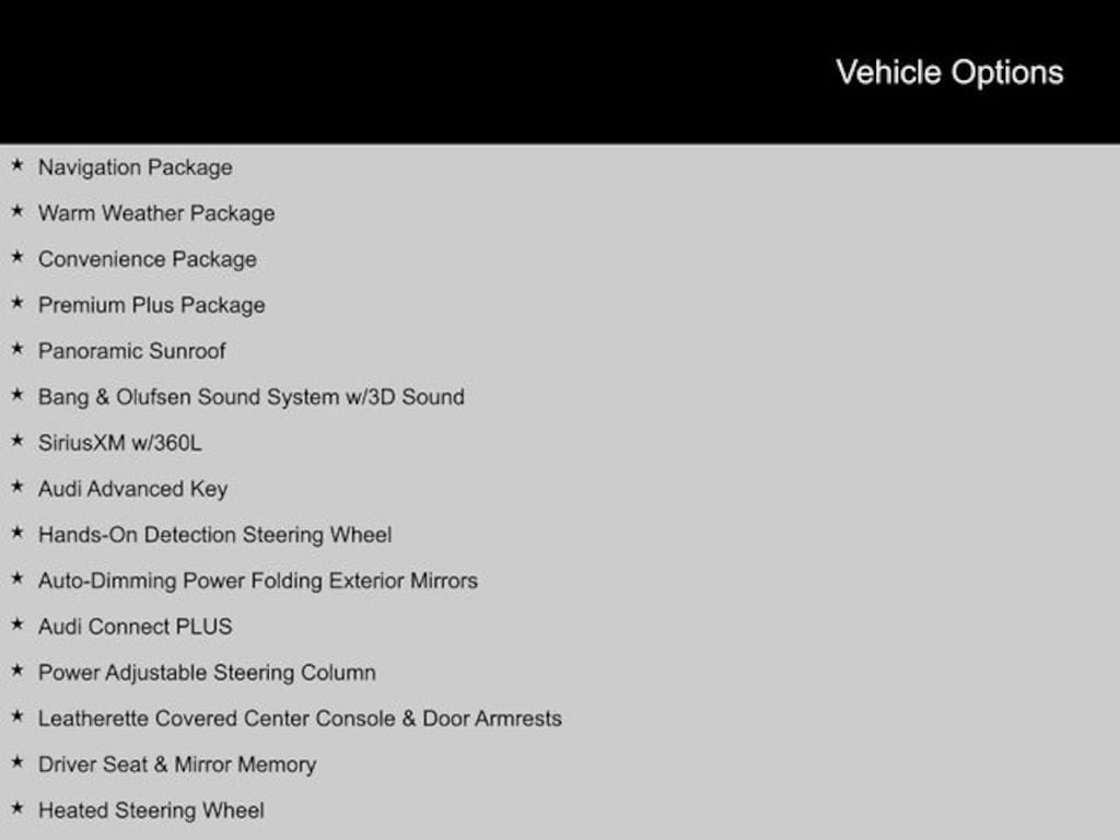 2023 Audi Q5 Atlas Beige Leather, Audi Active Lane Assist, Audi Advanced Key, Audi Connect PLUS, Audi MMI Navigation Plus, Audi Virtual Cockpit Plus, Auto-Dimming Power Folding Exterior Mirrors, Bang & Olufsen Sound System w/3D Sound, Convenience Package, Driver Seat & Mirror Memory, Hands-On Detection Steering Wheel, Heated Steering Wheel, Leatherette Covered Center Console & Door Armrests, Manual Rear Side Window Sunshades, Navigation Package, Panoramic Sunroof, Power Adjustable Steering Column, Premium Plus Package, SiriusXM w/360L, Top View Camera System, Traffic Jam Assist, Ventilated Front Sport Seats w/4-Way Power Lumbar, Warm Weather Package, Wheels: 19" 5-Arm-Pylon Design w/Matte Finish.