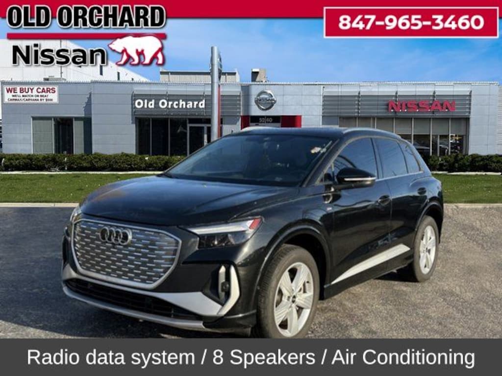 2024 Audi Q4 e-tron Single-Speed Automatic 8 Speakers, ABS brakes, Air Conditioning, Alloy wheels, Automatic temperature control, Bumpers: body-color, Dual front impact airbags, Dual front side impact airbags, Exterior Parking Camera Rear, Front dual zone A/C, Illuminated entry, Leather steering wheel, Low tire pressure warning, Power steering, Power windows, Radio data system, Rear air conditioning, Rear window defroster, Remote keyless entry, Security system, Steering wheel mounted audio controls, Telescoping steering wheel, Tilt steering wheel, Trip computer. CARFAX One-Owner. 97/87 City/Highway MPG Electric Motor