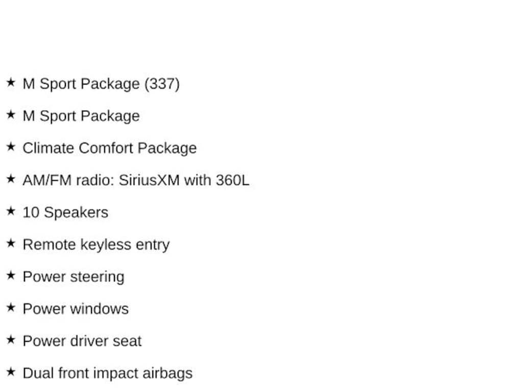 2022 BMW X5 8-Speed Automatic Sport Black Leather, 10 Speakers, 4-Wheel Disc Brakes, ABS brakes, AM/FM radio: SiriusXM with 360L, Bumpers: body-color, Climate Comfort Package, Dual front impact airbags, Heated Front Seats, Illuminated entry, Low tire pressure warning, M Sport Package, M Sport Package (337), Power driver seat, Power steering, Power windows, Remote keyless entry, Tachometer, Telescoping steering wheel, Tilt steering wheel, Trip computer, Wheels: 20" x 9" M Star-Spoke Bi-Color. Clean CARFAX. CARFAX One-Owner. 3.0L I6 DOHC 24V TwinPower Turbo