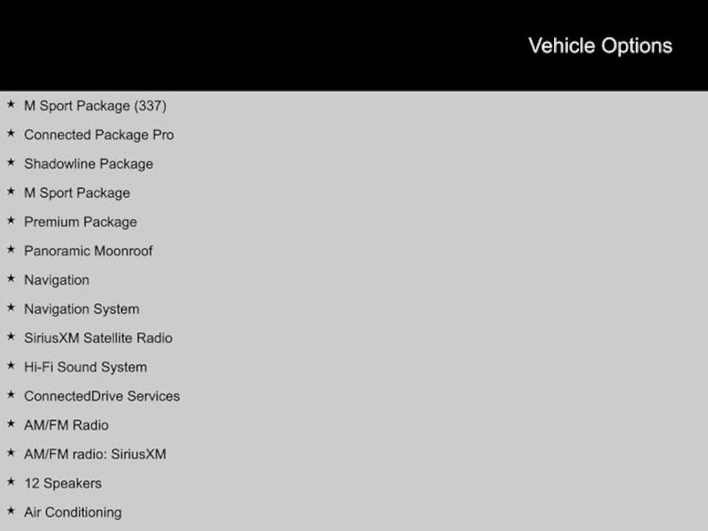 2023 BMW X3 8-Speed Automatic Sport, 12 Speakers, 3.385 Axle Ratio, Aerodynamic Kit, Air Conditioning, AM/FM Radio, AM/FM radio: SiriusXM, Apple CarPlay & Android Auto Compatibility, BMW Assist eCall, BMW TeleServices, Connected Package Pro, ConnectedDrive Services, Driver Lumbar Support, Enhanced USB & Bluetooth w/Smartphone Integration, Extended Shadowline Trim, Heated Front Seats, Heated Steering Wheel, Hi-Fi Sound System, Live Cockpit Pro w/Navigation, M Shadowline Lights, M Sport Package, M Sport Package (337), M Steering Wheel, Navigation, Navigation System, Panoramic Moonroof, Power Liftgate, Premium Package, Roof Rails in High-Gloss Shadowline, Shadowline Exterior Trim, Shadowline Package, SiriusXM Satellite Radio, Smoke Grey Aluminum Rhombicle Trim, Wheels: 19" x 7.5" M Y-Spoke Bi-Color (Style 887M), WiFi Hotspot, Without Exterior Lines Designation. CARFAX One-Owner.