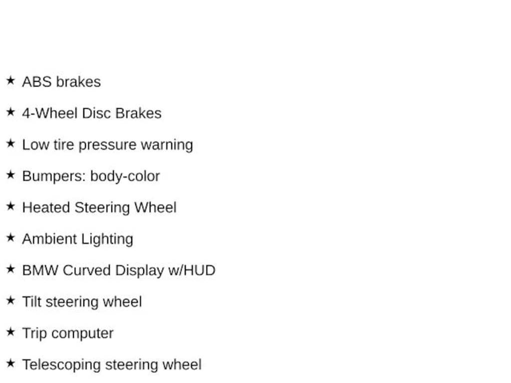 2023 BMW i4 Single-Speed Automatic 10 Speakers, 4-Wheel Disc Brakes, ABS brakes, Air Conditioning, Alloy wheels, Ambient Lighting, Automatic temperature control, BMW Curved Display w/HUD, Bumpers: body-color, Connected Package Pro, Driver Lumbar Support, Dual front impact airbags, Front dual zone A/C, Heated Front Seats, Heated Steering Wheel, Low tire pressure warning, Power driver seat, Power steering, Power windows, Premium Package, Telescoping steering wheel, Tilt steering wheel, Trip computer, Wheels: 19" x 8.5" Fr & 19" x 9.0" Rr M Bi-Color. Clean CARFAX. Electric Motor