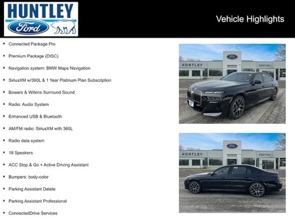 2024 BMW 7 Series AWD, Black w/Extended Merino Leather Upholstery, 18 Speakers, ACC Stop & Go + Active Driving Assistant, AM/FM radio: SiriusXM with 360L, Apple CarPlay & Android Auto Compatibility, BMW Curved Display w/HUD, Bowers & Wilkins Surround Sound, Bumpers: body-color, Connected Package Pro, ConnectedDrive Services, Enhanced USB & Bluetooth, Natural Interaction, Navigation system: BMW Maps Navigation, Parking Assistant Delete, Parking Assistant Professional, Personal eSIM 5G, Premium Package (DISC), Radio data system, Radio: Audio System, Rear Window Blind, SiriusXM w/360L & 1 Year Platinum Plan Subscription, Surround View w/3D View, Wheels: 20" M Aerodynamic Bi-Color Style 907. Clean CARFAX. CARFAX One-Owner.