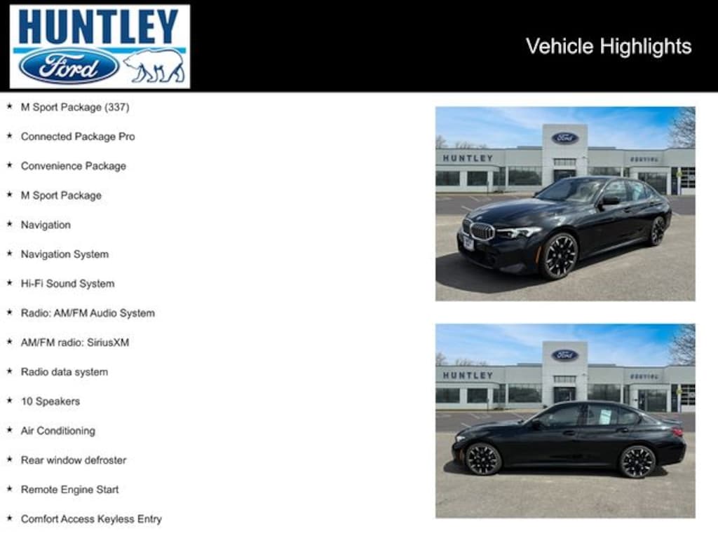 2025 BMW 3 Series AWD, 10 Speakers, Active Blind Spot Detection, Active Driving Assistant, Aerodynamic Kit, Air Conditioning, AM/FM radio: SiriusXM, Apple CarPlay & Android Auto Compatibility, Black Mirror Caps, BMW Assist eCall, BMW TeleServices, Comfort Access Keyless Entry, Connected Package Pro, ConnectedDrive Services, Convenience Package, Frontal Collision Warning, Heated Steering Wheel, Hi-Fi Sound System, Lane Departure Warning System, M Sport Package, M Sport Package (337), M Sport Suspension, M Steering Wheel, Navigation, Navigation System, Park Distance Control, Personal eSIM 5G, Power moonroof, Radio data system, Radio: AM/FM Audio System, Rear Spoiler, Rear window defroster, Remote Engine Start, Shadowline Exterior Trim, Variable Sport Steering, Wheels: 19" x 8" M Dual-Spoke Bicolor, Widescreen Display, Wireless Device Charging, Without Lines Designation Outside. Clean CARFAX. CARFAX One-Owner.