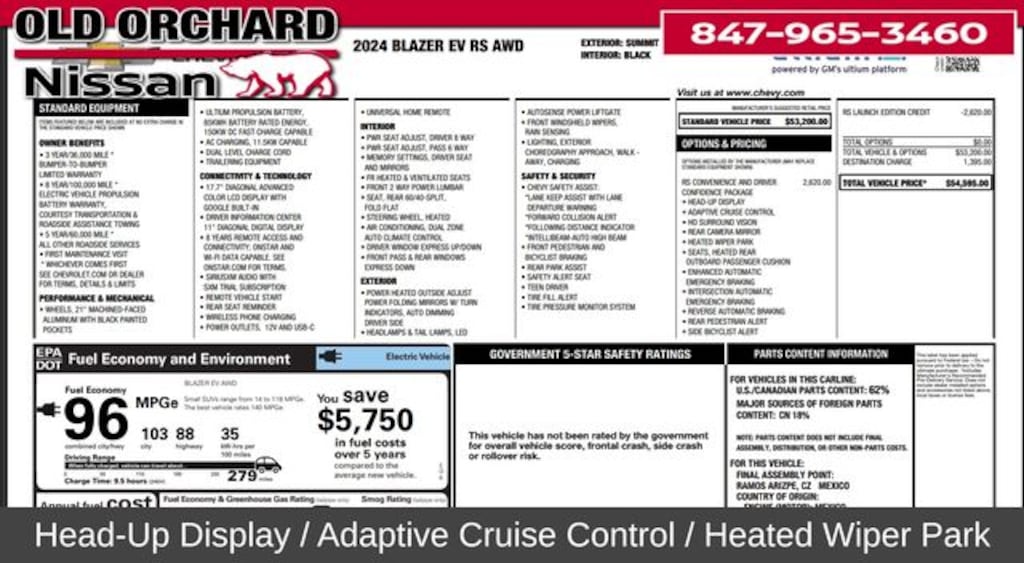 2024 Chevrolet Blazer EV 1-Speed Automatic Adaptive Cruise Control, Convenience & Driver Confidence Package, Enhanced Automatic Emergency Braking, HD Surround Vision, Head-Up Display, Heated Rear Outboard Passenger Cushion, Heated Wiper Park, Intersection Automatic Emergency Braking, Preferred Equipment Group 1RS, Rear Pedestrian Alert, Reverse Automatic Braking, RS Convenience & Driver Confidence Package, Side Bicyclist Alert. CARFAX One-Owner. 103/88 City/Highway MPG Electric Motor Odometer is 5863 miles below market average!