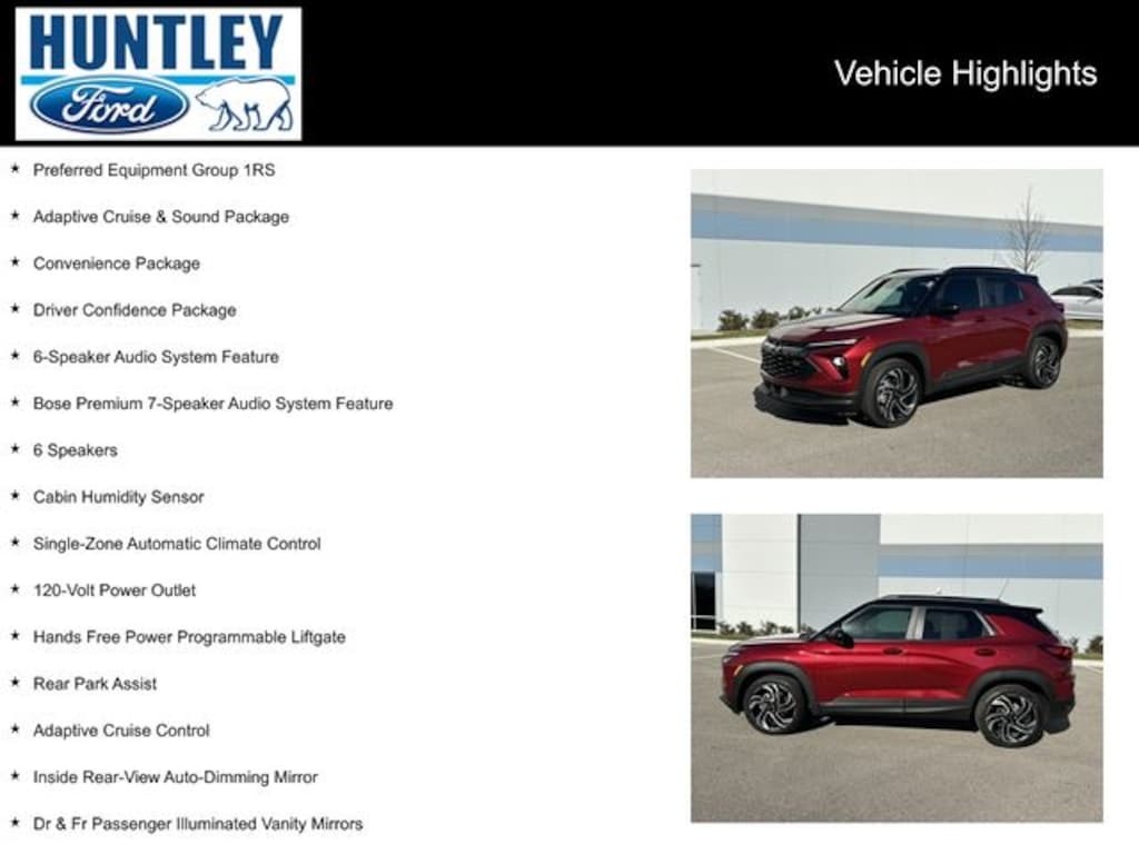 2025 Chevrolet TrailBlazer 120-Volt Power Outlet, 6 Speakers, 6-Speaker Audio System Feature, Adaptive Cruise Control, Bose Premium 7-Speaker Audio System Feature, Cabin Humidity Sensor, Convenience Package, Driver Confidence Package, Hands Free Power Programmable Liftgate, Inside Rear-View Auto-Dimming Mirror, Preferred Equipment Group 1RS, Rear Cross Traffic Alert, Rear Park Assist, Single-Zone Automatic Climate Control, Wheels: 19" High Gloss Black Machined Aluminum, Wireless Charging. CARFAX One-Owner.
