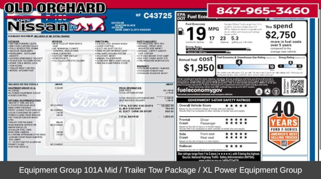 Plus Tax, Title, License and Doc Fee To qualified buyers with approved credit only. 0% APR for 72 months on new Fords. Max 10k financed. $13.89 per thousand financed. Must qualify and finance with captive lender to receive all incentives and rebates. See dealer for details. Although every reasonable effort has been made to ensure the accuracy of the information contained in this site, absolute accuracy cannot be guaranteed. This site and all the information and materials appearing on it, are presented to the user "as is" without a warranty of any kind, either expressed or implied. All vehicles are subject to prior sales. Vehicles shown at different locations are not currently in our inventory but can be made available to you at our location within a reasonable date form the time of your request, not to exceed one week. Huntley Ford serves customers 350 miles or closer. See Dealer for Details.