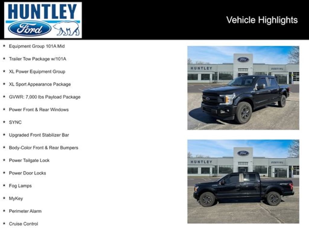 2020 Ford F-150 4WD, 3.31 Axle Ratio, 4.2" Productivity Screen in Instrument Cluster, Body-Color Front & Rear Bumpers, Box Side Decals, Class IV Trailer Hitch Receiver, Cruise Control, Equipment Group 101A Mid, Fog Lamps, FordPass Connect (4G), GVWR: 7,000 lbs Payload Package, Illuminated Entry, MyKey, Perimeter Alarm, Power Door Locks, Power Front & Rear Windows, Power Glass Sideview Mirrors w/Black Skull Caps, Power Tailgate Lock, Pro Trailer Backup Assist, SYNC, Trailer Tow Package w/101A, Upgraded Front Stabilizer Bar, Wheels: 17" Silver Painted Aluminum, XL Power Equipment Group, XL Sport Appearance Package. Clean CARFAX. CARFAX One-Owner.