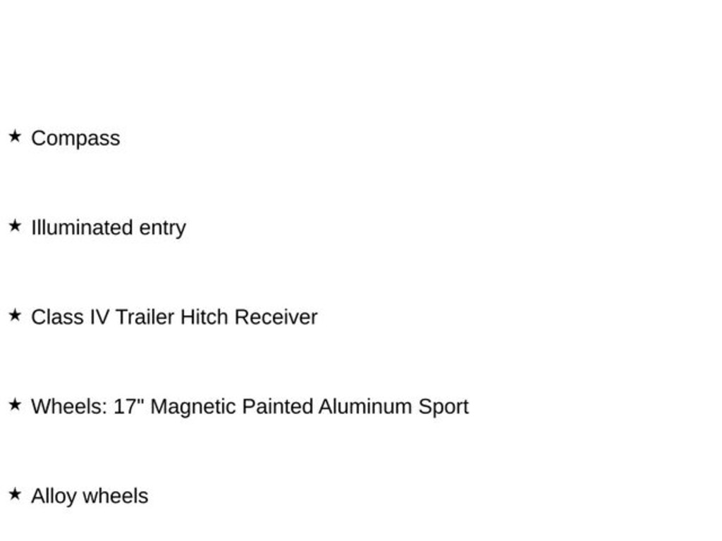 - Wheels: 17" Magnetic Painted Aluminum Sport