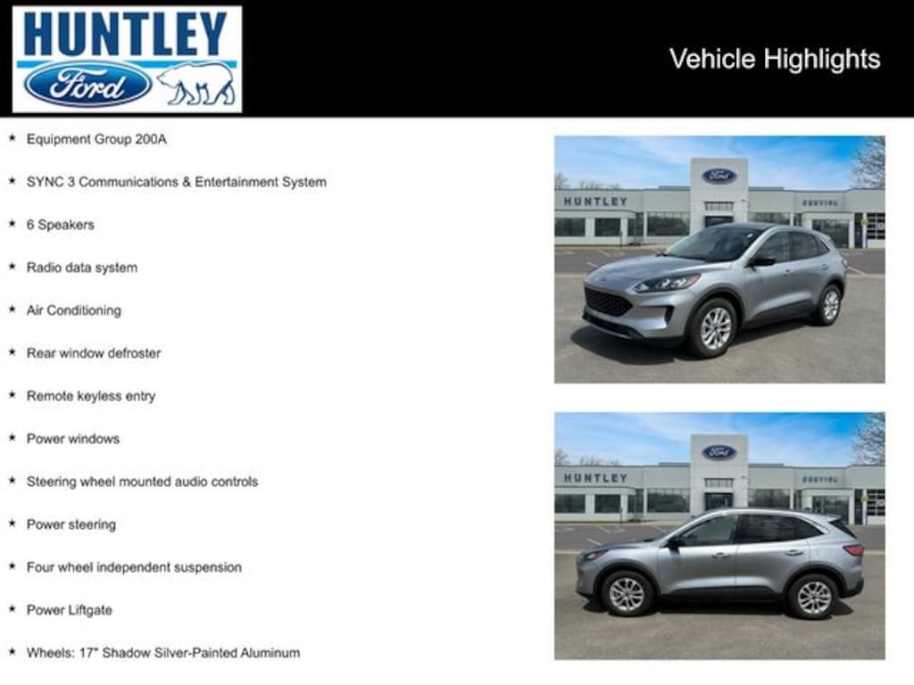 2022 Ford Escape 6 Speakers, Air Conditioning, Equipment Group 200A, Four wheel independent suspension, Power Liftgate, Power steering, Power windows, Radio data system, Rear window defroster, Remote keyless entry, Steering wheel mounted audio controls, SYNC 3 Communications & Entertainment System, Wheels: 17" Shadow Silver-Painted Aluminum. CARFAX One-Owner.