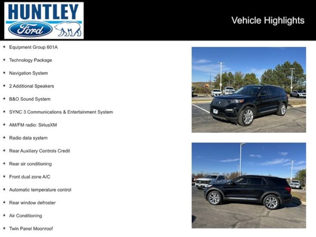 2022 Ford Explorer 4WD, 10.1" LCD Capacitive Portrait Touchscreen, 2 Additional Speakers, 3.31 Non-Limited-Slip Rear Axle Ratio, Air Conditioning, AM/FM radio: SiriusXM, Automatic temperature control, B&O Sound System, Equipment Group 601A, FordPass Connect, Front dual zone A/C, Navigation System, Power Liftgate, Radio data system, Rear air conditioning, Rear Auxiliary Controls Credit, Rear window defroster, SYNC 3 Communications & Entertainment System, Technology Package, Twin Panel Moonroof, Voice-Activated Touchscreen Navigation System, Wheels: 21" Bright Machined-Face Aluminum. Clean CARFAX. CARFAX One-Owner.
