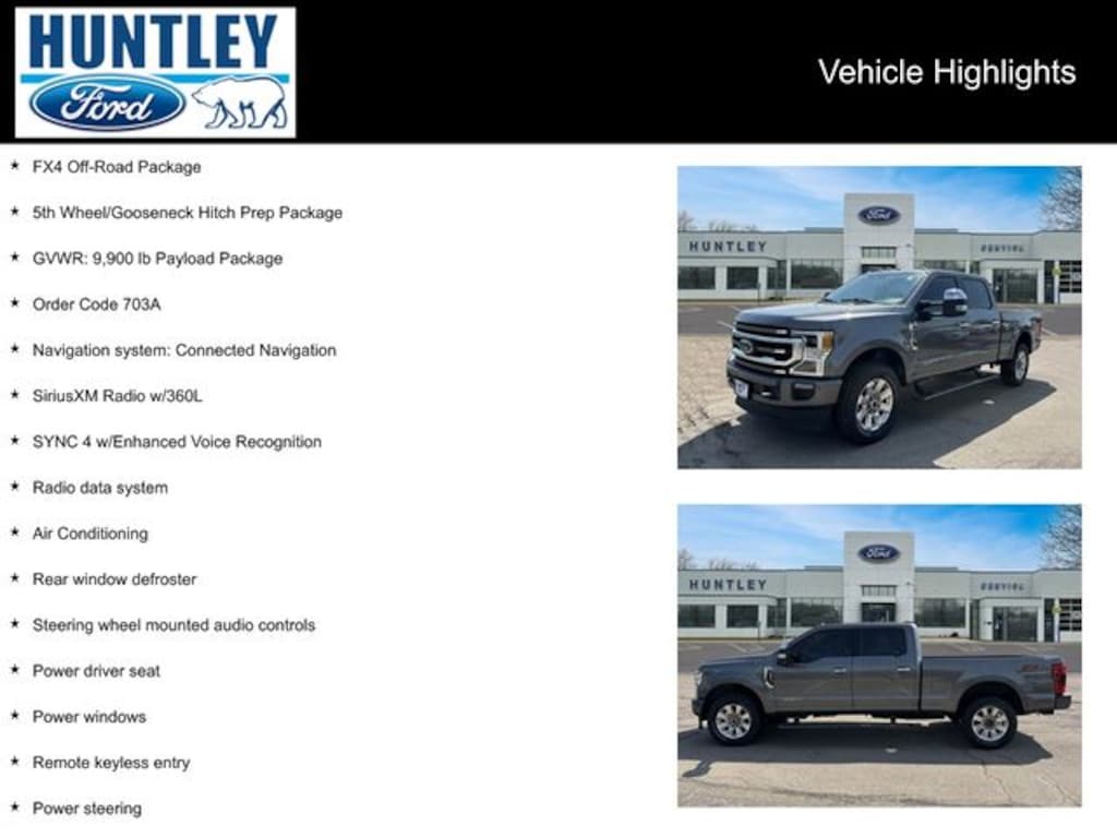 2022 Ford F-250SD 4WD, 397 Amp Alternator, 5th Wheel/Gooseneck Hitch Prep Package, Air Conditioning, Electronic-Locking w/3.31 Axle Ratio, FX4 Off-Road Package, GVWR: 9,900 lb Payload Package, Hill Descent Control, Navigation system: Connected Navigation, Off-Road Specifically Tuned Shock Absorbers, Order Code 703A, Power driver seat, Power steering, Power windows, Radio data system, Rear window defroster, Remote keyless entry, SiriusXM Radio w/360L, Steering wheel mounted audio controls, SYNC 4 w/Enhanced Voice Recognition, Twin Panel Power Moonroof, Unique FX4 Off-Road Box Decal, Upfitter Switches (6). Clean CARFAX. CARFAX One-Owner.