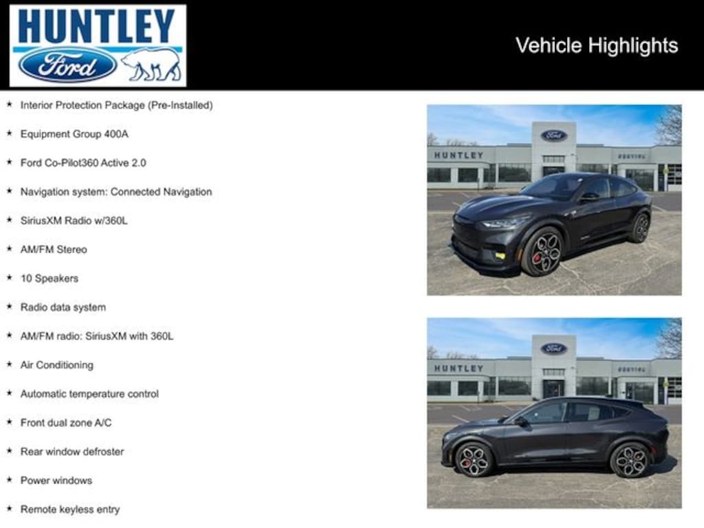 2022 Ford Mustang Mach-E 10 Speakers, 360 Degree Camera, Active Park Assist 2.0, Air Conditioning, AM/FM radio: SiriusXM with 360L, AM/FM Stereo, Automatic temperature control, BlueCruise Hands-Free Driving, Cargo Area Protector, Equipment Group 400A, Ford Co-Pilot360 Active 2.0, Front & Rear Floor Liners, Front dual zone A/C, Interior Protection Package (Pre-Installed), Memory seat, Navigation system: Connected Navigation, Panoramic Fixed-Glass Roof, Power driver seat, Power Liftgate, Power steering, Power windows, Radio data system, Rain sensing wipers, Rear window defroster, Rear window wiper, Remote keyless entry, SiriusXM Radio w/360L, Speed-Sensitive Wipers, Steering wheel mounted audio controls, SYNC 4A w/Enhanced Voice Recognition, Variably intermittent wipers, Wheels: 20" Machined-Face Aluminum. CARFAX One-Owner.