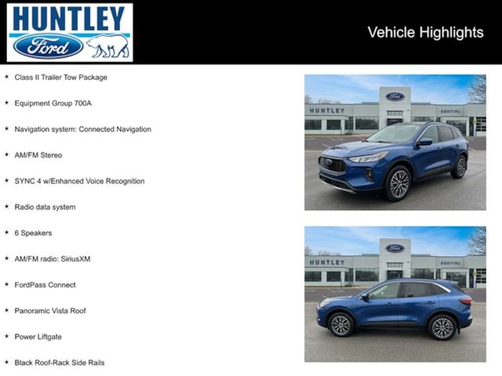 Plus Tax, Title, License and Doc Fee To qualified buyers with approved credit only. 0% APR for 72 months on new Fords. Max 10k financed. $13.89 per thousand financed. Must qualify and finance with captive lender to receive all incentives and rebates. See dealer for details. Although every reasonable effort has been made to ensure the accuracy of the information contained in this site, absolute accuracy cannot be guaranteed. This site and all the information and materials appearing on it, are presented to the user "as is" without a warranty of any kind, either expressed or implied. All vehicles are subject to prior sales. Vehicles shown at different locations are not currently in our inventory but can be made available to you at our location within a reasonable date form the time of your request, not to exceed one week. Huntley Ford serves customers 350 miles or closer. See Dealer for Details.