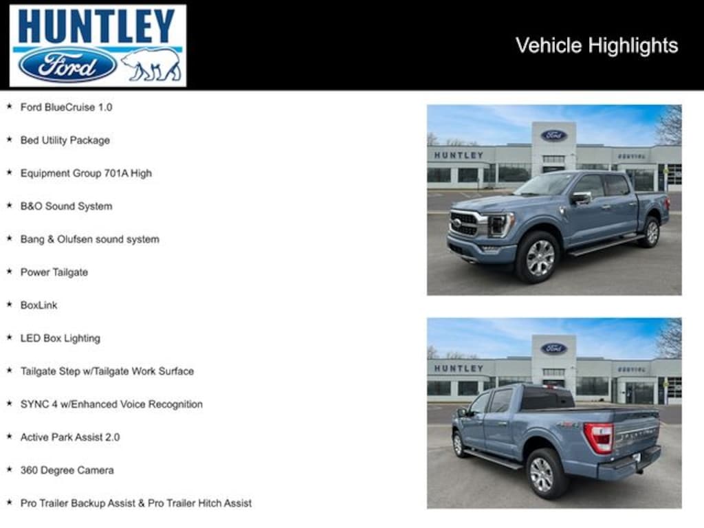 2023 Ford F-150 3.5L PowerBoost Full-Hybrid V6, 4WD, 360 Degree Camera, Active Park Assist 2.0, B&O Sound System, Bang & Olufsen sound system, Bed Utility Package, BoxLink, Equipment Group 701A High, Ford BlueCruise 1.0, LED Box Lighting, Power Tailgate, Pro Trailer Backup Assist & Pro Trailer Hitch Assist, SYNC 4 w/Enhanced Voice Recognition, Tailgate Step w/Tailgate Work Surface. Clean CARFAX. CARFAX One-Owner.