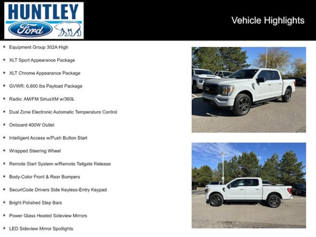 2023 Ford F-150 4WD, 10-Way Power Driver & Passenger Seats, 2-Bar Style Grille w/Chrome 2 Minor Bars, 8" Productivity Screen in Instrument Cluster, Accent-Color Step Bars, Auto-Dimming Rear-View Mirror, Black 2-Bar Style Grille w/Black Surround/Accents, Body-Color Door & Tailgate Handles, Body-Color Front & Rear Bumpers, Box Side Decals, Bright Polished Step Bars, Chrome Door & Tailgate Handles w/Body-Color Bezel, Chrome Single-Tip Exhaust, Class IV Trailer Hitch Receiver, Dual Zone Electronic Automatic Temperature Control, Equipment Group 302A High, GVWR: 6,600 lbs Payload Package, Heated Front Seats, Intelligent Access w/Push Button Start, LED Reflector Headlamps, LED Sideview Mirror Spotlights, Onboard 400W Outlet, Power Glass Heated Sideview Mirrors, Power-Sliding Rear Window, Radio: AM/FM SiriusXM w/360L, Rear Under-Seat Storage, Remote Start System w/Remote Tailgate Release, SecuriCode Drivers Side Keyless-Entry Keypad, SYNC 4 w/Enhanced Voice Recognition, Unique Sport Cloth 40/Console/40 Front-Seats, Wheels: 20" 6-Spoke Dark Alloy Painted Aluminum, Wrapped Steering Wheel, XLT Chrome Appearance Package, XLT Sport Appearance Package, Zone Lighting. CARFAX One-Owner.