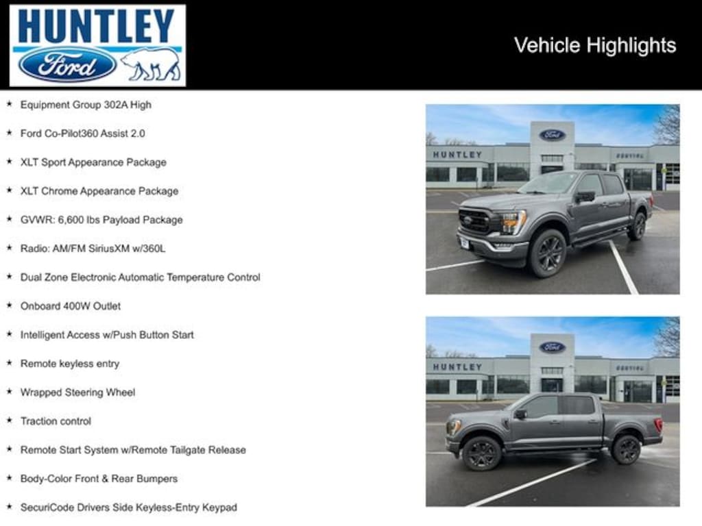 2023 Ford F-150 4WD, 10-Way Power Driver & Passenger Seats, 2-Bar Style Grille w/Chrome 2 Minor Bars, 3.55 Axle Ratio, 8" Productivity Screen in Instrument Cluster, ABS brakes, Accent-Color Step Bars, Alloy wheels, Auto-Dimming Rear-View Mirror, Black 2-Bar Style Grille w/Black Surround/Accents, Body-Color Door & Tailgate Handles, Body-Color Front & Rear Bumpers, Box Side Decals, Bright Polished Step Bars, Chrome Door & Tailgate Handles w/Body-Color Bezel, Chrome Single-Tip Exhaust, Class IV Trailer Hitch Receiver, Compass, Connected Built-In Navigation, Dual Zone Electronic Automatic Temperature Control, Electronic Stability Control, Equipment Group 302A High, Evasive Steering Assist, Extended Range 36 Gallon Fuel Tank, Ford Co-Pilot360 Assist 2.0, GVWR: 6,600 lbs Payload Package, Heated door mirrors, Heated Front Seats, Illuminated entry, Intelligent Access w/Push Button Start, Intelligent Adaptive Cruise Control w/Stop & Go, Intersection Assist, LED Reflector Headlamps, LED Sideview Mirror Spotlights, Low tire pressure warning, Onboard 400W Outlet, Power Glass Heated Sideview Mirrors, Radio: AM/FM SiriusXM w/360L, Rear Under-Seat Storage, Remote keyless entry, Remote Start System w/Remote Tailgate Release, SecuriCode Drivers Side Keyless-Entry Keypad, Speed Sign Recognition, SYNC 4 w/Enhanced Voice Recognition, Traction control, Unique Sport Cloth 40/Console/40 Front-Seats, Wheels: 20" 6-Spoke Dark Alloy Painted Aluminum, Wrapped Steering Wheel, XLT Chrome Appearance Package, XLT Sport Appearance Package, Zone Lighting. Clean CARFAX.