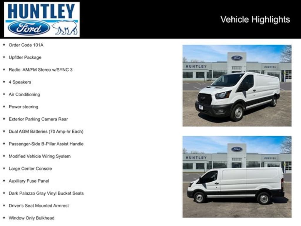 2023 Ford Transit-350 4 Speakers, 4.10 Limited-Slip Axle Ratio, Air Conditioning, Auxiliary Fuse Panel, Dark Palazzo Gray Vinyl Bucket Seats, Driver's Seat Mounted Armrest, Dual AGM Batteries (70 Amp-hr Each), Exterior Parking Camera Rear, Large Center Console, Modified Vehicle Wiring System, Order Code 101A, Passenger-Side B-Pillar Assist Handle, Power steering, Radio: AM/FM Stereo w/SYNC 3, Upfitter Package, Wheels: 16" Silver Steel w/Silver Hubcaps, Window Only Bulkhead. CARFAX One-Owner.