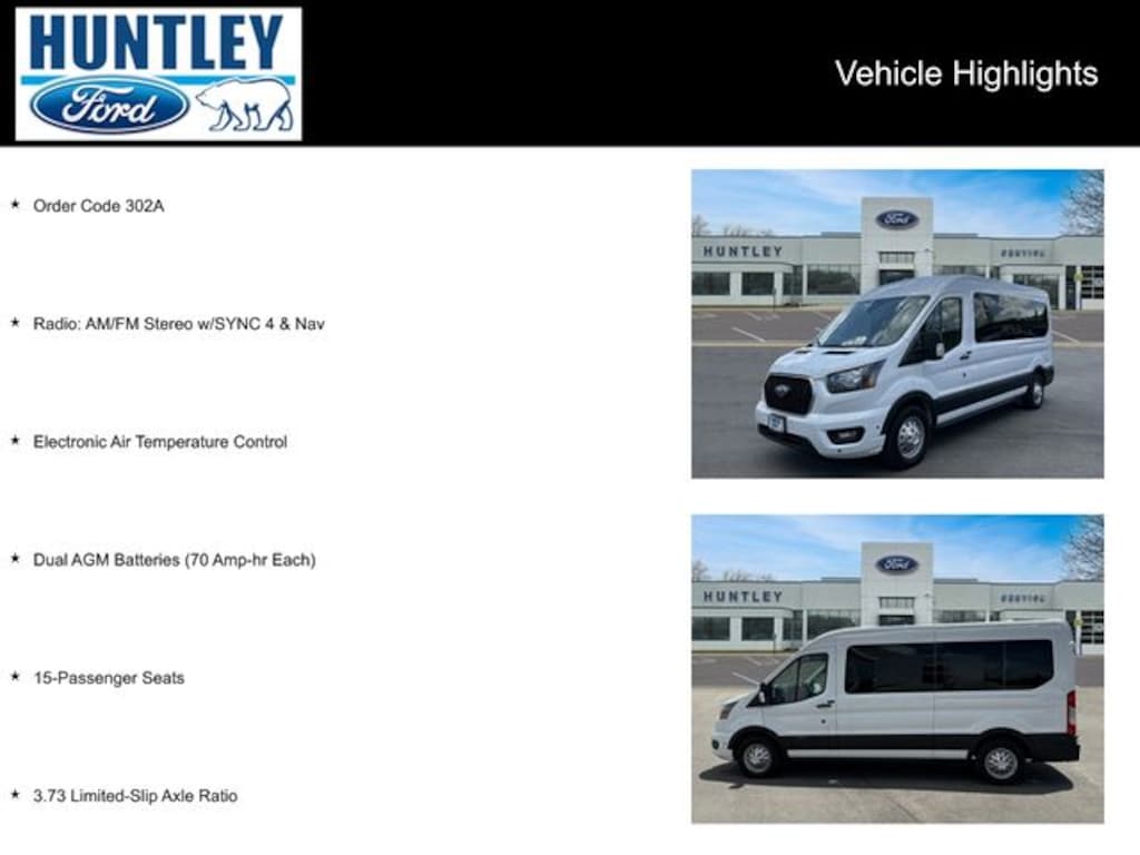 2024 Ford Transit-350 15-Passenger Seats, 3.73 Limited-Slip Axle Ratio, Dual AGM Batteries (70 Amp-hr Each), Electronic Air Temperature Control, Order Code 302A, Radio: AM/FM Stereo w/SYNC 4 & Nav. Clean CARFAX. CARFAX One-Owner.