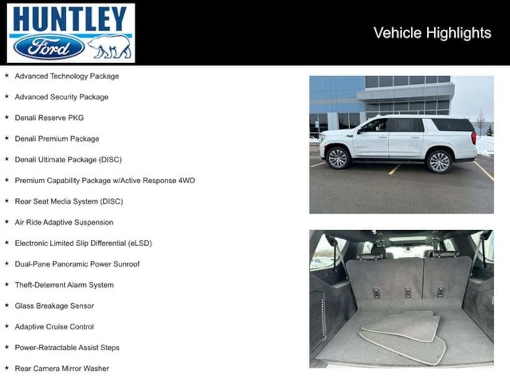 2022 GMC Yukon XL 4WD, Adaptive Cruise Control, Advanced Security Package, Advanced Technology Package, Air Ride Adaptive Suspension, Denali Premium Package, Denali Reserve PKG, Denali Ultimate Package (DISC), Dual-Pane Panoramic Power Sunroof, Electronic Limited Slip Differential (eLSD), Enhanced Automatic Emergency Braking, Glass Breakage Sensor, Inside Rearview Auto-Dimming Rear Camera Mirror, Power-Retractable Assist Steps, Premium Capability Package w/Active Response 4WD, Rear Camera Mirror Washer, Rear Seat Media System (DISC), Reverse Automatic Braking, Theft-Deterrent Alarm System, Vehicle Inclination Sensor, Vehicle Interior Movement Sensor, Wheel Locks (Set of 4) (LPO), Wheels: 22" x 9" Bright Machined Aluminum. Clean CARFAX.