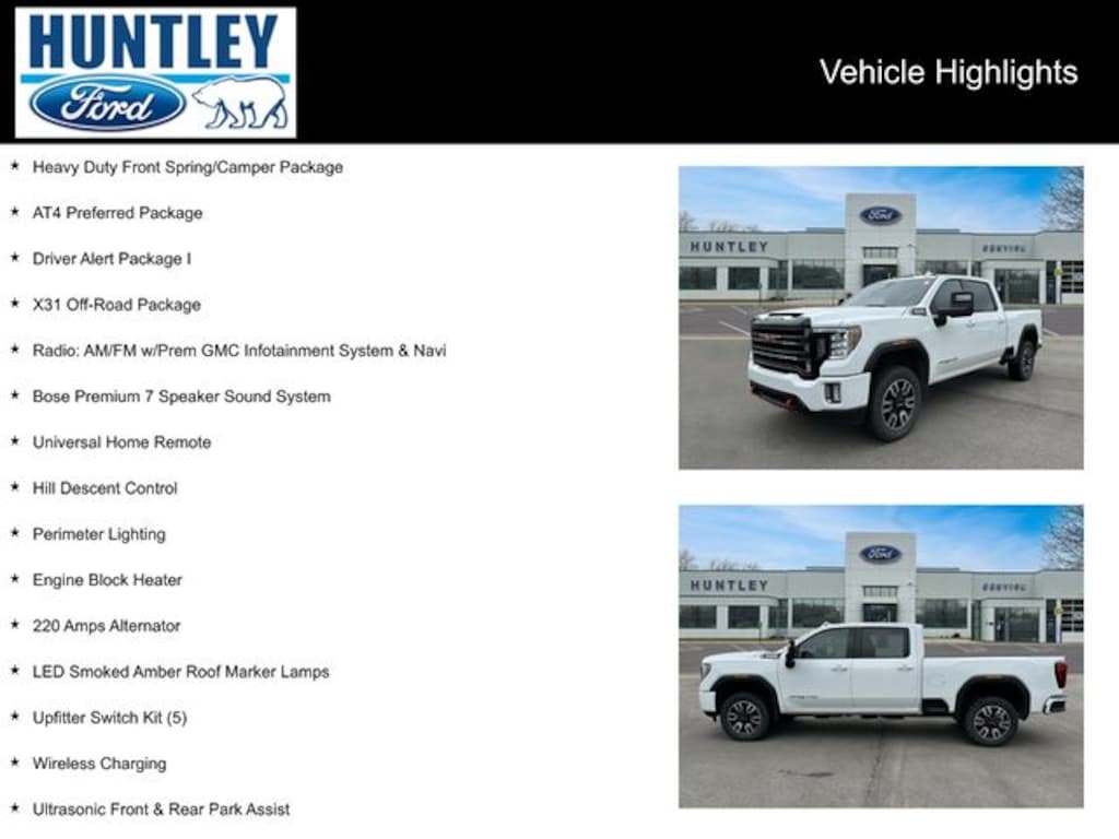 2023 GMC Sierra 2500HD 10-Speed Automatic, 4WD, Jet Black With Kalahari Accents Leather, 220 Amps Alternator, AT4 Preferred Package, Bed View Camera w/2 Trailer Camera Provisions, Bose Premium 7 Speaker Sound System, Driver Alert Package I, Engine Block Heater, HD Surround Vision w/2 Trailer View Camera Provisions, Heavy Duty Front Spring/Camper Package, Hill Descent Control, Lane Change Alert w/Side Blind Zone Alert, LED Smoked Amber Roof Marker Lamps, Perimeter Lighting, Power Sliding Rear Window w/Defogger, Radio: AM/FM w/Prem GMC Infotainment System & Navi, Rear Cross Traffic Alert, Rear Underseat Storage (LPO), Ultrasonic Front & Rear Park Assist, Universal Home Remote, Upfitter Switch Kit (5), Wheels: 20" Machined Aluminum Bolt Pattern (LPO), Wheels: 20" Transit Aluminum, Wireless Charging, X31 Off-Road Package. Clean CARFAX.