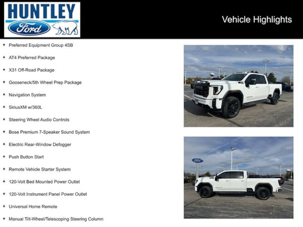 2024 GMC Sierra 2500HD 10-Speed Automatic, 4WD, Jet Black With Kalahari Accents Leather, 120-Volt Bed Mounted Power Outlet, 120-Volt Instrument Panel Power Outlet, 2 Charge-Only Rear USB Ports, 2 Charge/Data USB Ports Inside Center Console, 2 USB Ports, 2-Speed Active Transfer Case, Adaptive Cruise Control, AT4 Preferred Package, Bed View Camera w/2 Trailer Camera Provisions, Bose Premium 7-Speaker Sound System, Deep-Tinted Glass, Electric Rear-Window Defogger, Floor-Mounted Center Console, Front Prem Floor Liners w/Removable Carpet Insert, Front Rain-Sensing Wipers, Gloss Black Header Grille & Grille Insert Bars, GMC Connected Access Capable, Gooseneck/5th Wheel Prep Package, HD Surround Vision, Heated 2nd Row Outboard Seats, Heated Driver & Front Outboard Passenger Seats, Hill Descent Control, Integrated Trailer Brake Controller, Keyless Open & Start, LED Cargo Area Lighting, LED Smoked Amber Roof Marker Lamps, Manual Tilt-Wheel/Telescoping Steering Column, Navigation System, OnStar & GMC Connected Services Capable, Pickup Box, Power Front Passenger Windows w/Express Up/Down, Power Sliding Rear Window w/Defogger, Preferred Equipment Group 4SB, Push Button Start, Rear Cross Traffic Alert, Rear Prem Floor Liners w/Removable Carpet Insert, Rear Wheelhouse Liners, Remote Vehicle Starter System, Safety Alert Seat, SiriusXM w/360L, Spray-On Bedliner w/AT4 Logo, Steering Wheel Audio Controls, Trailer Cam Provisions & Trailer Viewing Software, Trailer Side Blind Zone Alert, Ultrasonic Front & Rear Park Assist, Unauthorized Entry Theft-Deterrent System, Universal Home Remote, Ventilated Driver & Front Passenger Seats, Wheels: 20" High Gloss Black 8 Spokes Aluminum, Wireless Charging, Wireless Phone Projection, X31 Off-Road Package. Clean CARFAX.
