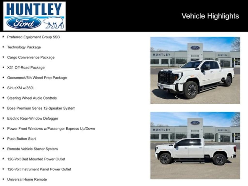 2024 GMC Sierra 3500HD 10-Speed Automatic, 4WD, Alpine Umber Leather, 120-Volt Bed Mounted Power Outlet, 120-Volt Instrument Panel Power Outlet, 2 Charge-Only Rear USB Ports, 2 Charge/Data USB Ports Inside Center Console, 2 USB Ports, 2-Speed Active Transfer Case, 3.42 Rear Axle Ratio, Auto-Dimming Inside Rearview Mirror w/Camera, Bed View Camera w/2 Trailer Camera Provisions, Bose Premium Series 12-Speaker System, Cargo Convenience Package, Console-Mounted Safe (LPO), Deep-Tinted Glass, Electric Rear-Window Defogger, Floor-Mounted Center Console, Front Rain-Sensing Wipers, Gooseneck/5th Wheel Prep Package, HD Surround Vision, Heated 2nd Row Outboard Seats, Heated Driver & Front Outboard Passenger Seats, Hill Descent Control, Hitch Guidance w/Hitch View, In-Vehicle Trailering App, Integrated Trailer Brake Controller, Keyless Open & Start, LED Cargo Area Lighting, LED Smoked Amber Roof Marker Lamps, Manual Tilt-Wheel/Telescoping Steering Column, Multicolor 15" Diagonal Head-Up Display, Pickup Bed, Power Front Windows w/Passenger Express Up/Down, Power moonroof, Power Sliding Rear Window w/Defogger, Power Sunroof, Preferred Equipment Group 5SB, ProGrade Trailering System, Push Button Start, Rear Cross Traffic Alert, Rear Underseat Storage (LPO), Rear Wheelhouse Liners, Remote Vehicle Starter System, Safety Alert Seat, Signature Denali Grille in Vader Chrome, SiriusXM w/360L, Spray-On Pickup Bedliner w/Denali Logo, Steering Wheel Audio Controls, Technology Package, Trailer Camera Provisions, Trailer Side Blind Zone Alert, Trailer Tire Pressure Monitor Sensors, Ultrasonic Front & Rear Park Assist, Unauthorized Entry Theft-Deterrent System, Universal Home Remote, Ventilated Driver & Front Passenger Seats, Wheels: 20" Ultra-Bright Machined Aluminum, Wireless Charging, Wireless Phone Projection, X31 Off-Road Package. Clean CARFAX.