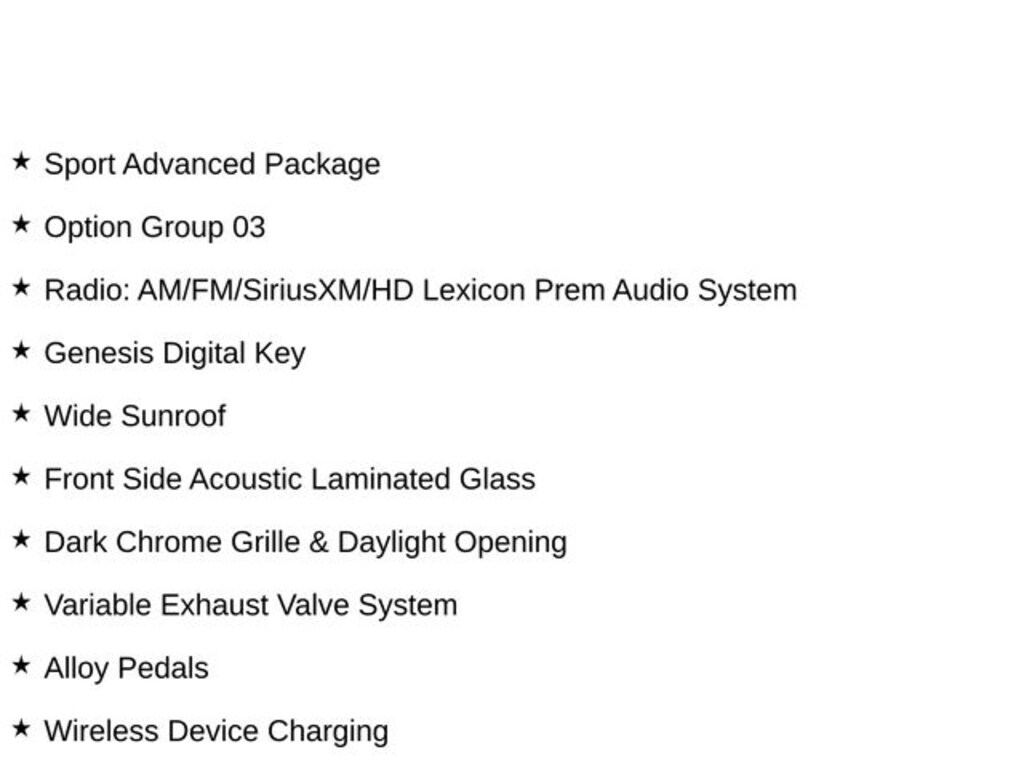 Recent Arrival! 2022 Genesis G70 8-Speed Automatic Alloy Pedals, Dark Chrome Grille & Daylight Opening, Door & Console Aluminum Trim w/Sport Pattern, Forward/Reverse Parking Distance Warning, Front Side Acoustic Laminated Glass, Genesis Digital Key, Option Group 03, Power Driver Seat Side Bolster & Cushion Extension, Radio: AM/FM/SiriusXM/HD Lexicon Prem Audio System, Sport Advanced Package, Variable Exhaust Valve System, Ventilated Front Seats, Wheels: 19" x 8.0J Fr & 19" x 8.5J Rr Sport Alloy, Wide Sunroof, Wireless Device Charging. Clean CARFAX. CARFAX One-Owner. V6