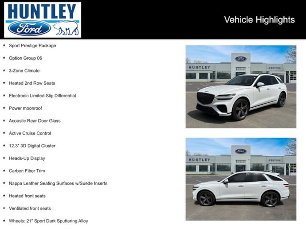 2022 Genesis GV70 12.3" 3D Digital Cluster, 3-Zone Climate, Acoustic Rear Door Glass, Active Cruise Control, Carbon Fiber Trim, Electronic Limited-Slip Differential, Heads-Up Display, Heated 2nd Row Seats, Heated front seats, Manual Rear Side Sunshades, Nappa Leather Seating Surfaces w/Suede Inserts, Option Group 06, Power moonroof, Sport Prestige Package, Ventilated front seats, Wheels: 21" Sport Dark Sputtering Alloy. Clean CARFAX. CARFAX One-Owner.