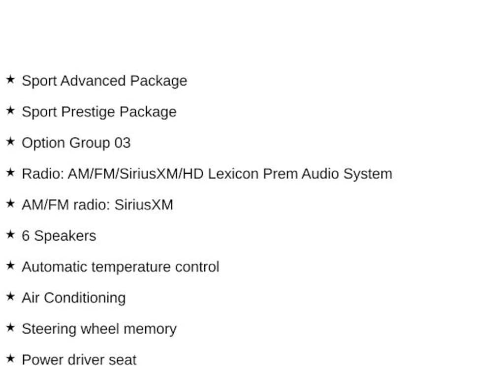 - Radio: AM/FM/SiriusXM/HD Audio System