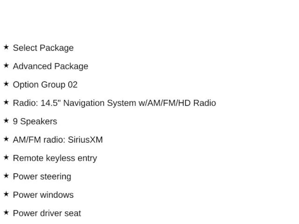 - Radio: 14.5" Navigation System w/AM/FM/HD Radio