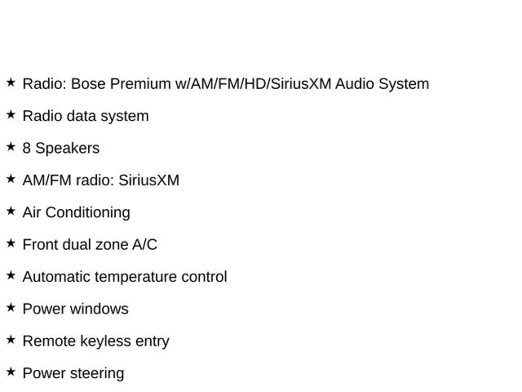 - Radio: Bose Premium w/AM/FM/HD/SiriusXM Audio System