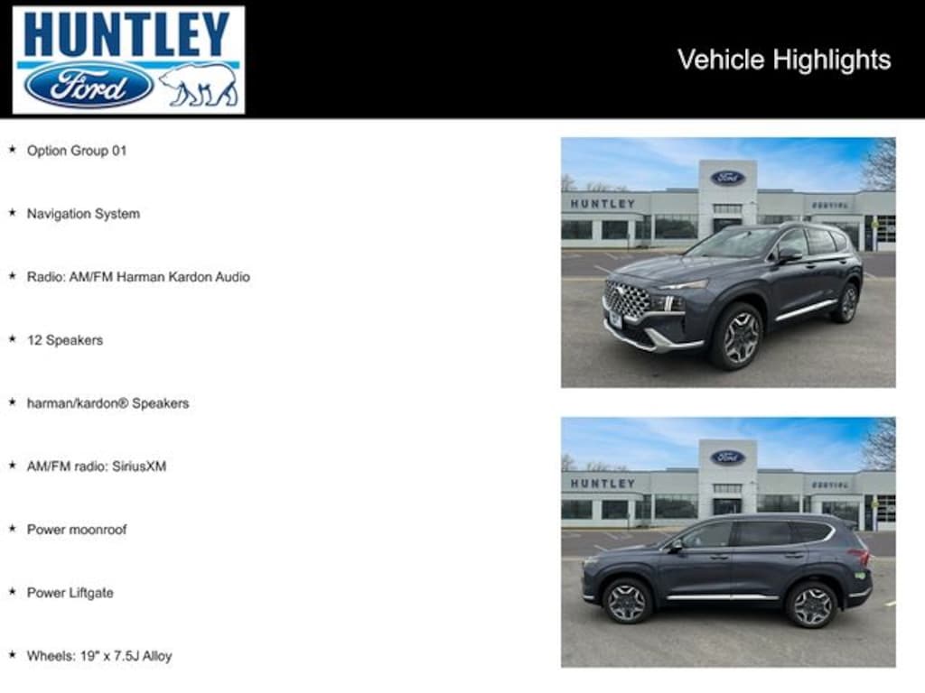 Plus Tax, Title, License and Doc Fee To qualified buyers with approved credit only. 0% APR for 72 months on new Fords. Max 10k financed. $13.89 per thousand financed. Must qualify and finance with captive lender to receive all incentives and rebates. See dealer for details. Although every reasonable effort has been made to ensure the accuracy of the information contained in this site, absolute accuracy cannot be guaranteed. This site and all the information and materials appearing on it, are presented to the user "as is" without a warranty of any kind, either expressed or implied. All vehicles are subject to prior sales. Vehicles shown at different locations are not currently in our inventory but can be made available to you at our location within a reasonable date form the time of your request, not to exceed one week. Huntley Ford serves customers 350 miles or closer. See Dealer for Details.