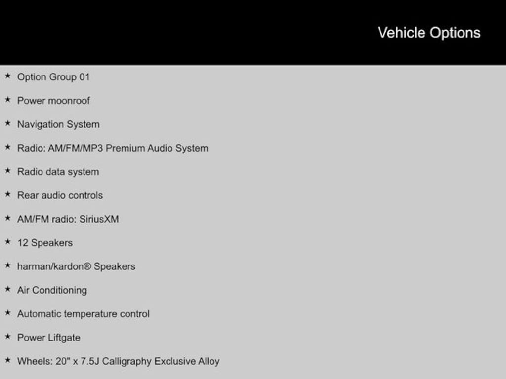 - Wheels: 20" x 7.5J Calligraphy Exclusive Alloy