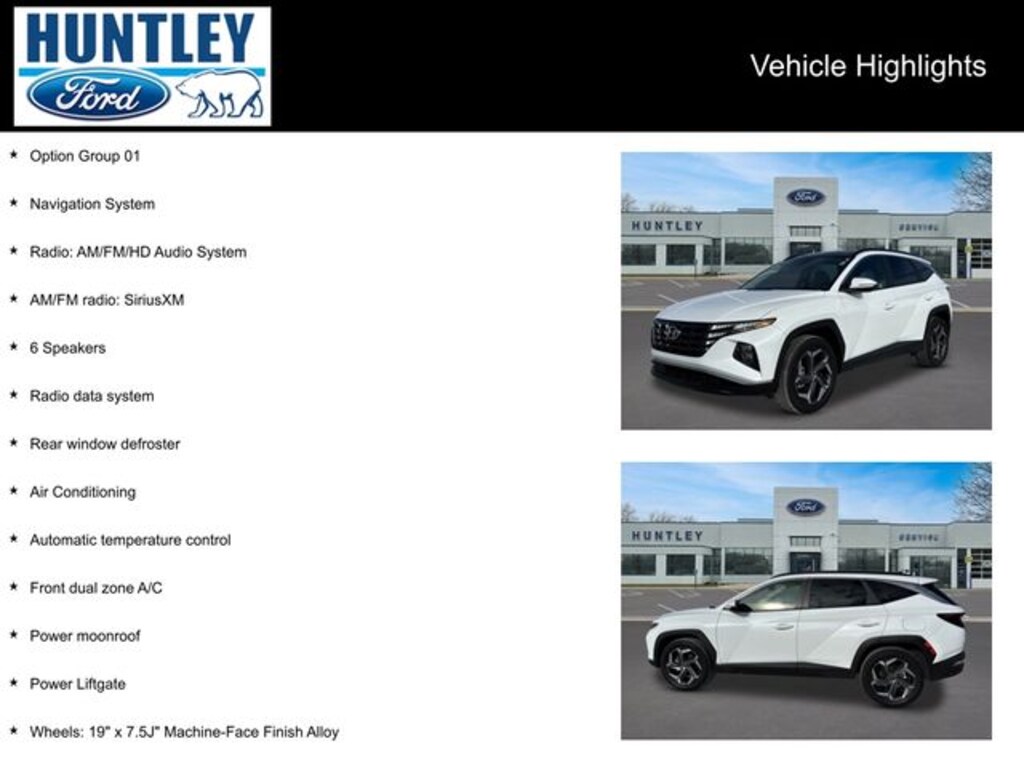 Plus Tax, Title, License and Doc Fee To qualified buyers with approved credit only. 0% APR for 72 months on new Fords. Max 10k financed. $13.89 per thousand financed. Must qualify and finance with captive lender to receive all incentives and rebates. See dealer for details. Although every reasonable effort has been made to ensure the accuracy of the information contained in this site, absolute accuracy cannot be guaranteed. This site and all the information and materials appearing on it, are presented to the user "as is" without a warranty of any kind, either expressed or implied. All vehicles are subject to prior sales. Vehicles shown at different locations are not currently in our inventory but can be made available to you at our location within a reasonable date form the time of your request, not to exceed one week. Huntley Ford serves customers 350 miles or closer. See Dealer for Details.