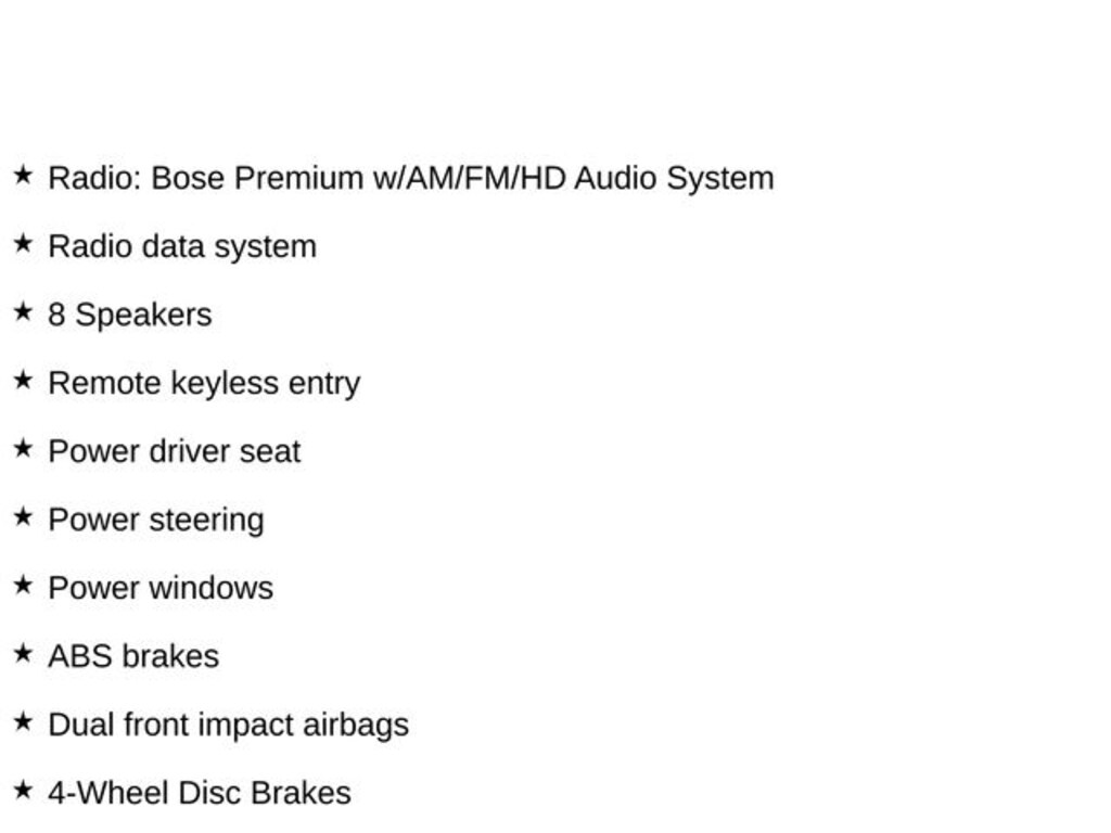 - Radio: Bose Premium w/AM/FM/HD Audio System