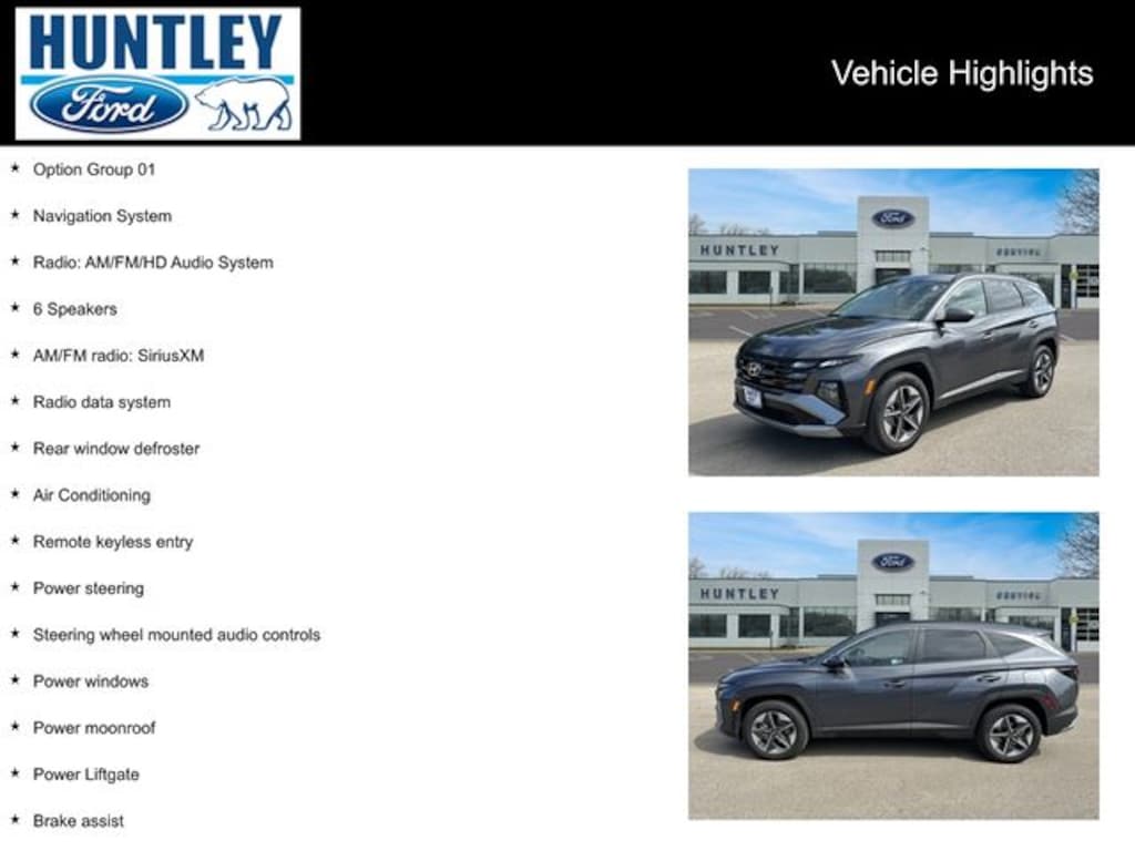 2025 Hyundai Tucson Hybrid 1.6L I4 DGI Hybrid Turbocharged DOHC 16V LEV3-SULEV30, 18" Alloy Wheels, 6 Speakers, Air Conditioning, AM/FM radio: SiriusXM, Brake assist, Navigation System, Option Group 01, Power Liftgate, Power moonroof, Power steering, Power windows, Radio data system, Radio: AM/FM/HD Audio System, Rear window defroster, Remote keyless entry, Steering wheel mounted audio controls. Clean CARFAX. CARFAX One-Owner.