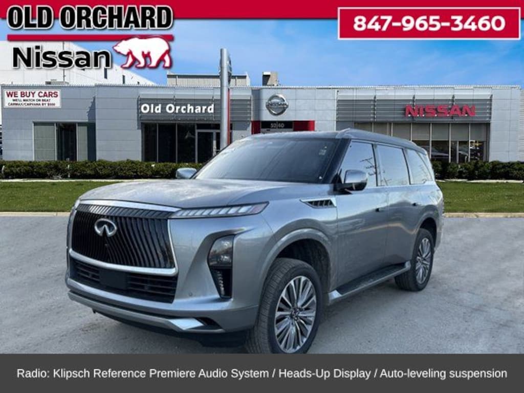 2025 INFINITI QX80 9-Speed Automatic 3rd row seats: bench, Adaptive suspension, Auto-leveling suspension, Heads-Up Display, Premium Paint, Radio: Klipsch Reference Premiere Audio System. Clean CARFAX. CARFAX One-Owner. 3.5L V6 DOHC 24V