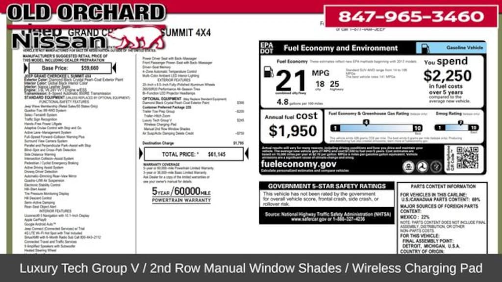 2021 Jeep Grand Cherokee L 8-Speed Automatic 2nd Row Manual Window Shades, Luxury Tech Group V, Quick Order Package 22S, Trailer Hitch Zoom, Trailer Tow Group (B), Two Tone Paint Group, Wireless Charging Pad. Clean CARFAX. CARFAX One-Owner. 3.6L V6 24V VVT Odometer is 8398 miles below market average!