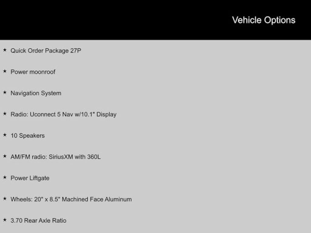 - Radio: Uconnect 5 Nav w/10.1" Display