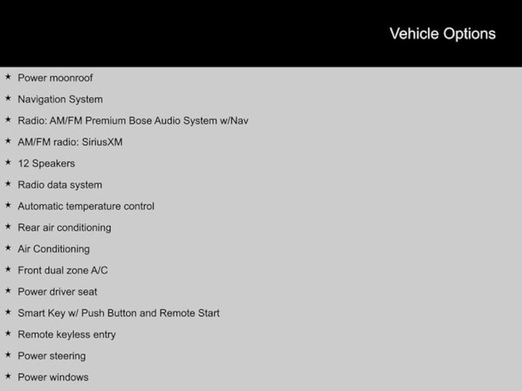- Radio: AM/FM Premium Bose Audio System w/Nav