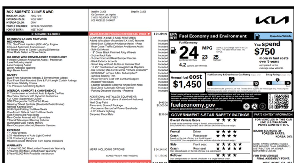 I got the 2022 Sorento for myself after we bought a 2021 Telluride for my wife. Our Sorento is the SX-Prestige, AWD X-Line version. I love the safety features -active lane keeping assist, adaptive cruise control, active assist braking, collision monitoring and more- and the 360 degree cameras are a great feature when getting in or out of tight spaces. The 2.5L turbo is very impressive, with lots of power and torque, and the handling is fantastic, especially around corners at fast speed. This feels more solid on cornering than the 2018 Tiguan I had, which was much lower to the ground. The mileage is good for an AWD, at 22 city and 27 highway. The cargo space is great, especially if you drop the third row -very easy- which allows for tons of shopping/grocery bags or luggage. I love the design, as well, which takes many cues from the bigger Telluride. The 100,000 mile limited powertrain warranty gives me comfort, as does the bumper to bumper 60k warranty. My previous Ford Escape was half that for bumper to bumper, and only 60k for powertrain, and the transmissionAND the turbo both went out at 60k. Scary! Kia has been on a great streak with quality and design. Can't wait to see how these perform over the years, but my confidence is high. The 2022 Sorento has memory seats, which was missing from the 2021 model and is a great feature when you have multiple drivers. There are some things the Sorento lacks that the Telluride has, and which are available in other countries but not on a North American Sorento. The most notable is the heads-up display, which I find to be a great safety feature on the Telluride. Blind spot monitoring, distance to the car in front, speed, they're all displayed in the heads-up unit -but not available on North American Sorentos. Also missing are hood struts -you have to use a manual prop to hold the hood open, despite hood struts being on Sorentos in other markets. Who knows, maybe they had to trim weight for mileage regulations.…