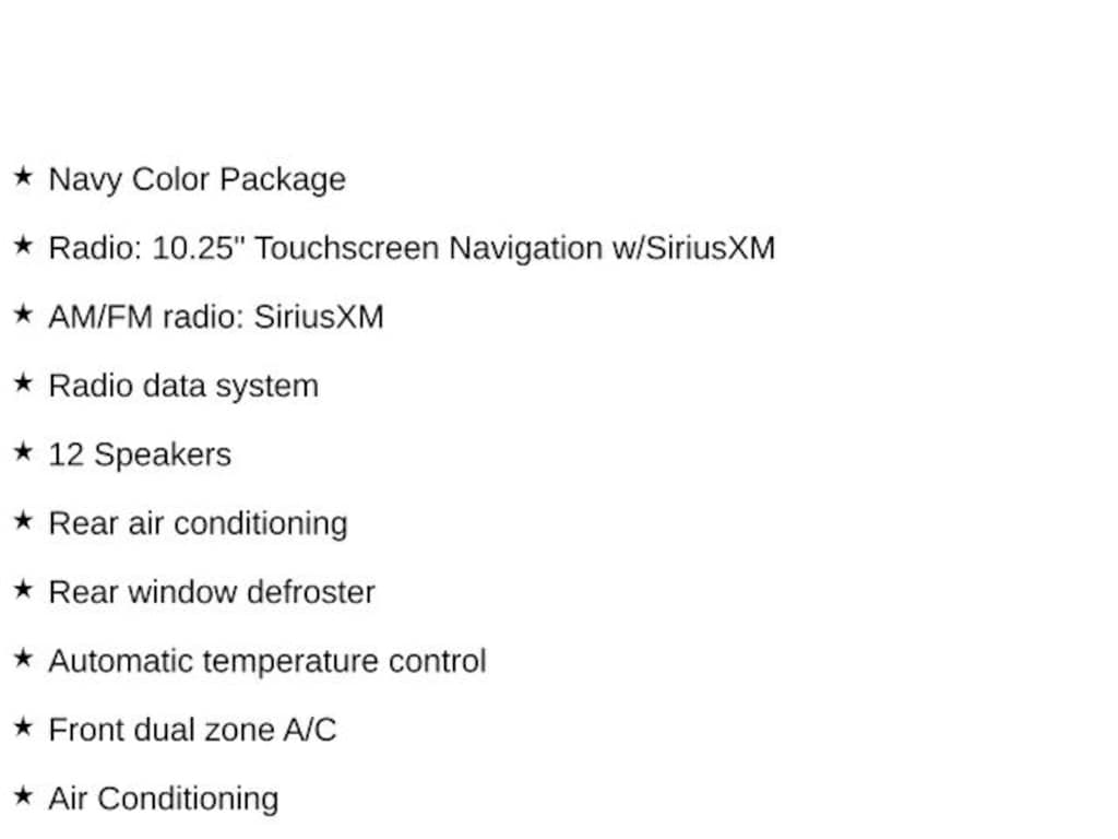 - Radio: 10.25" Touchscreen Navigation w/SiriusXM