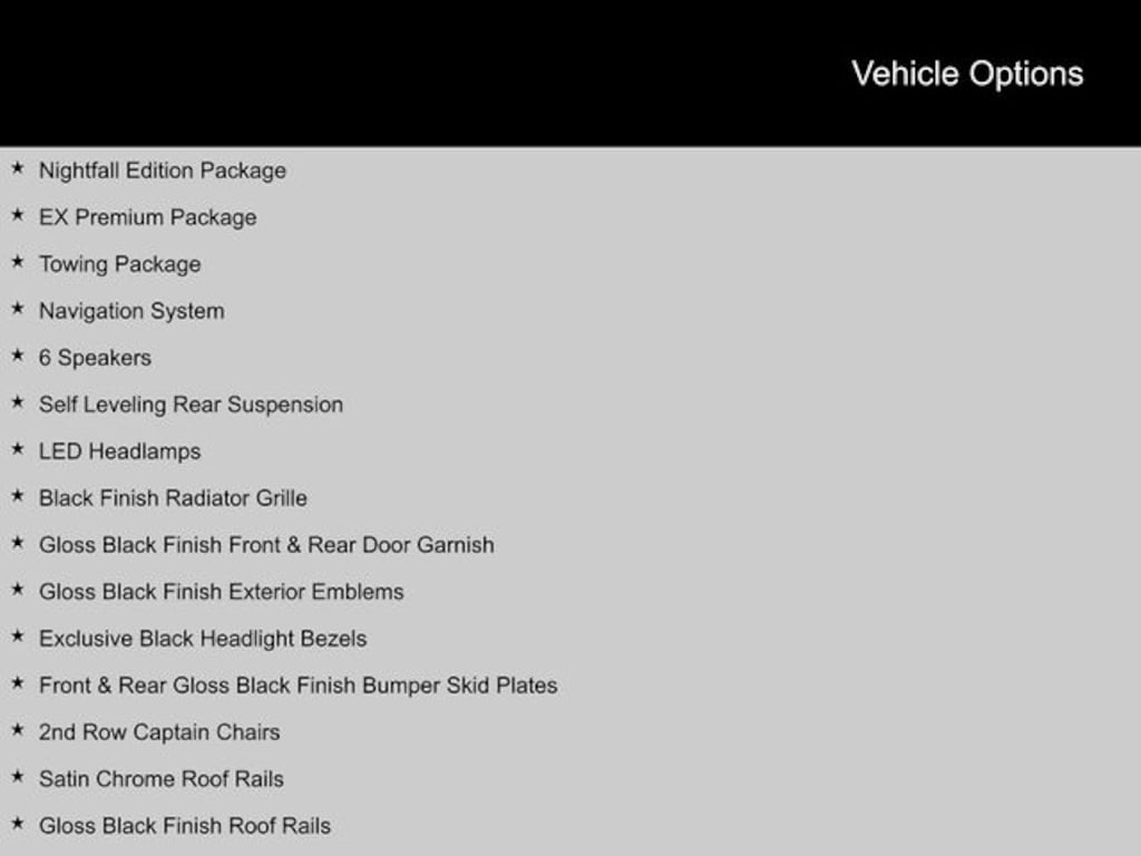 2022 Kia Telluride 20" x 7.5" Machined Alloy Wheels, 2nd Row Captain Chairs, 6 Speakers, Black Finish Radiator Grille, EX Premium Package, Exclusive Black Headlight Bezels, Front & Rear Gloss Black Finish Bumper Skid Plates, Gloss Black Finish Exterior Emblems, Gloss Black Finish Front & Rear Door Garnish, Gloss Black Finish Roof Rails, LED Headlamps, Navigation System, Nightfall Edition Package, Satin Chrome Roof Rails, Self Leveling Rear Suspension, Tow Hitch w/Harness (TOF), Towing Package, Wheels: 20" x 7.5" Exclusive Black Alloy. CARFAX One-Owner.
