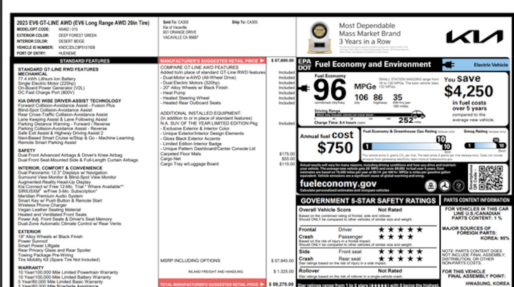 - Combined Fuel Economy (kWh)