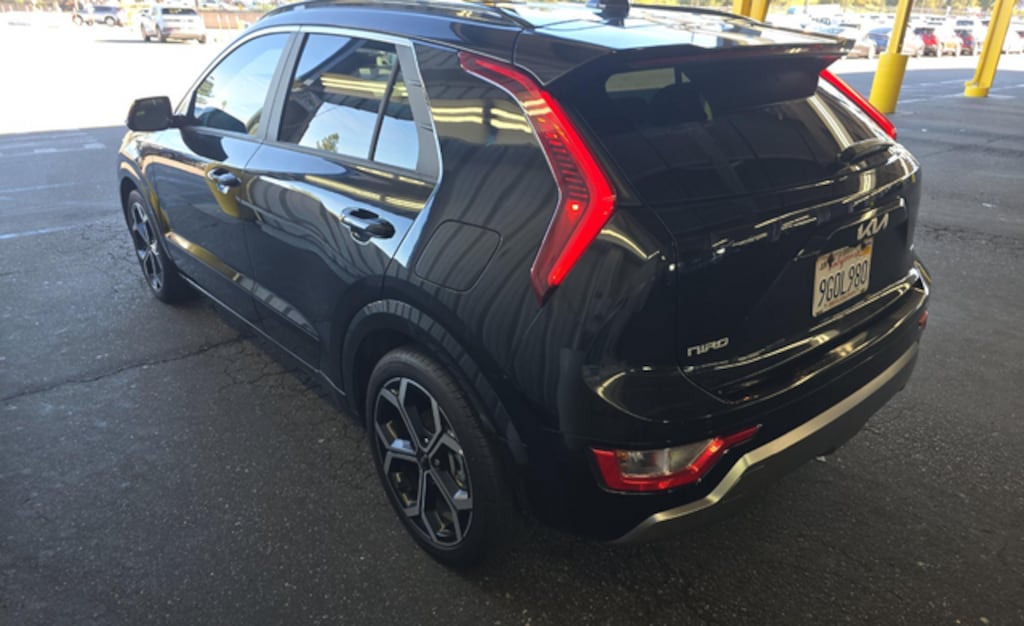 We bought our 2023 Kia Niro EX Touring in December 2022. After a year of driving it regularly, here are the pros, cons: Pros: 1. When you fill up, it only holds 10 gallons. Unbelievably this is enough to go for weeks. The gas mileage is so good, you are almost driving for free. Even if you are heavy footed like my wife, stomping on gas and brakes, you get the same great MPGs. We are averaging 47MPG since buying the car. If we had the smaller wheels, we'd get in the mid 50s. 2. It looks really nice. Inside and out, the styling is really good. It just blends in nicely in any situations. You can park in a lot with expensive luxury cars and fit right in. At the same time, you can park in a bad neighborhood and not be a target. 3. Seamless power. You will hear the motor switch on and off but you don't feel any effect and learn to disregard that. The power from pedal to wheels is seamless and the transmission shifts nicely every time to the right gears (not a CVT, which is nice in my opinion). 4. Interior is really nice and seems to be good quality. I especially like the display screen. 5. Safety features like rear cross traffic warning and side mirror car detection lights are a must, especially in a car this small. CONS: 1. We got the pearl white. Usually, a white car always looks clean even when dirty. Not this one. It is a magnet for dirt and it is visible. It sticks to it like metal shreds to a magnet. When you wash your car, there is a massive amount of dirt in the door jams and places you wouldn't expect it. 2. Display controls. I've almost crashed a bunch of times trying to do something simple like adjust the temperature. It uses almost all touch display and you know how that is when trying to drive. Also, the radio and climate share a touch pad, and you are supposed to alternate between the two by touching a spot on the screen. Super awkward. 3. Climate has a mind of its own. I like to have the recycled air on all the time, otherwise I smell the exhaust of the car in front of me. I understand this turns off when using defrost, that is normal. But this car changes my settings constantly for no reason, even though I turn off "auto" climate, it comes back on. Every time I turn on recycled air, a few minutes later, it's off. For me, this is the worst part of the car. 4. Rear brake noises. We notice after a month the rear brakes at times would make a frightening noise like a train stopping, and the whole car would vibrate. I took it in for this they said they couldn't replicate the issue. After my own trial and error, I realized it is likely the Auto Hold feature getting confused when going at low speeds like through a parking lot or backing out of the driveway. 5. The back hatch closes way too easy, so until you get used to it, you will slam the heck out of it. My daughter closed it once and the rear license plate fell off. Wishlist: I have the EX Touring which I believe included the moonroof and bigger wheels and some safety features. -I don't know all the trim levels and features, but I wish our model included the seat memory buttons. When you have a car that gets MGP like this everyone in the house will be driving it. It is a big hassle adjusting the driver seat and mirrors every day. -I wouldn't get the bigger wheels next time, I would rather have the extra MPGs -I wouldn't get the moonroof. There is no feature that closes it automatically if you leave it open. So it just takes 1 time forgetting to close it, followed by rain, and your interior is ruined. I hardly use the moonroof and my wife never uses it, but I worry about it all the time. I think some of these things are bundled in certain trim models, like the seat memory button and bigger wheels, so it may not be possible. For Kia, you should make the features all available options in every model. Overall, for all the annoyances, all is forgiven when you go to fill it up and it's only $40 and everyone around you is moaning and groaning.… - 5.0