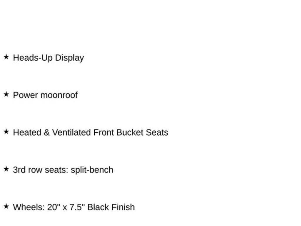 Overall an excellent vehicle. Minor annoyances are the fact that a garage door opener is only standard on the highest trim. Digital Instrument display is a little cheap looking and not very user friendly or informative. Other than that, it's a comfortable ride with a bunch of room. Has built in sunshades in the rear doors which is nice to have. USB ports everywhere even in the 3rd row.… - 5.0