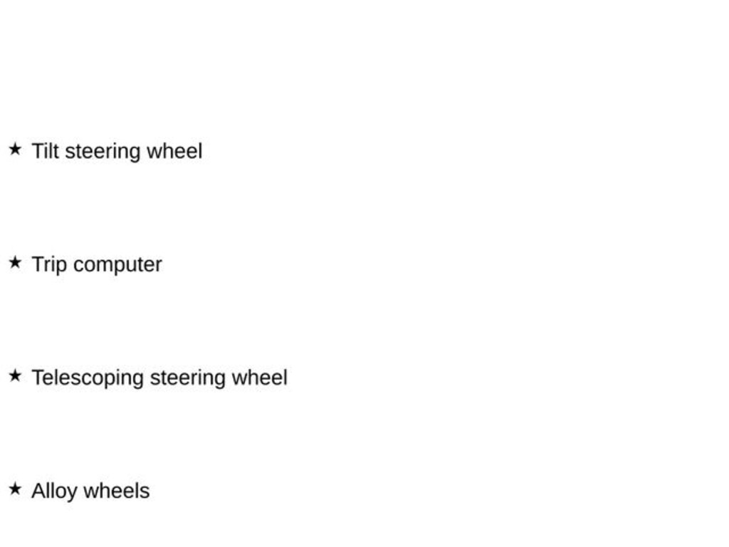 - Parking sensors: Parking Distance Warning - Forward & Reverse (PDW-F&R) front and rear